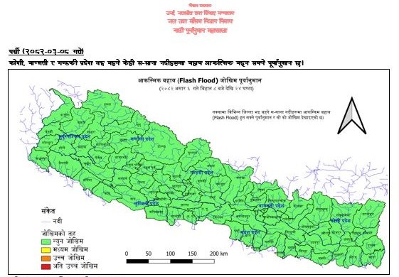 बाढीको चेतावनीः ५६ जिल्ला उच्च जोखिममा, २२ मा ‘एल्लो अलर्ट’