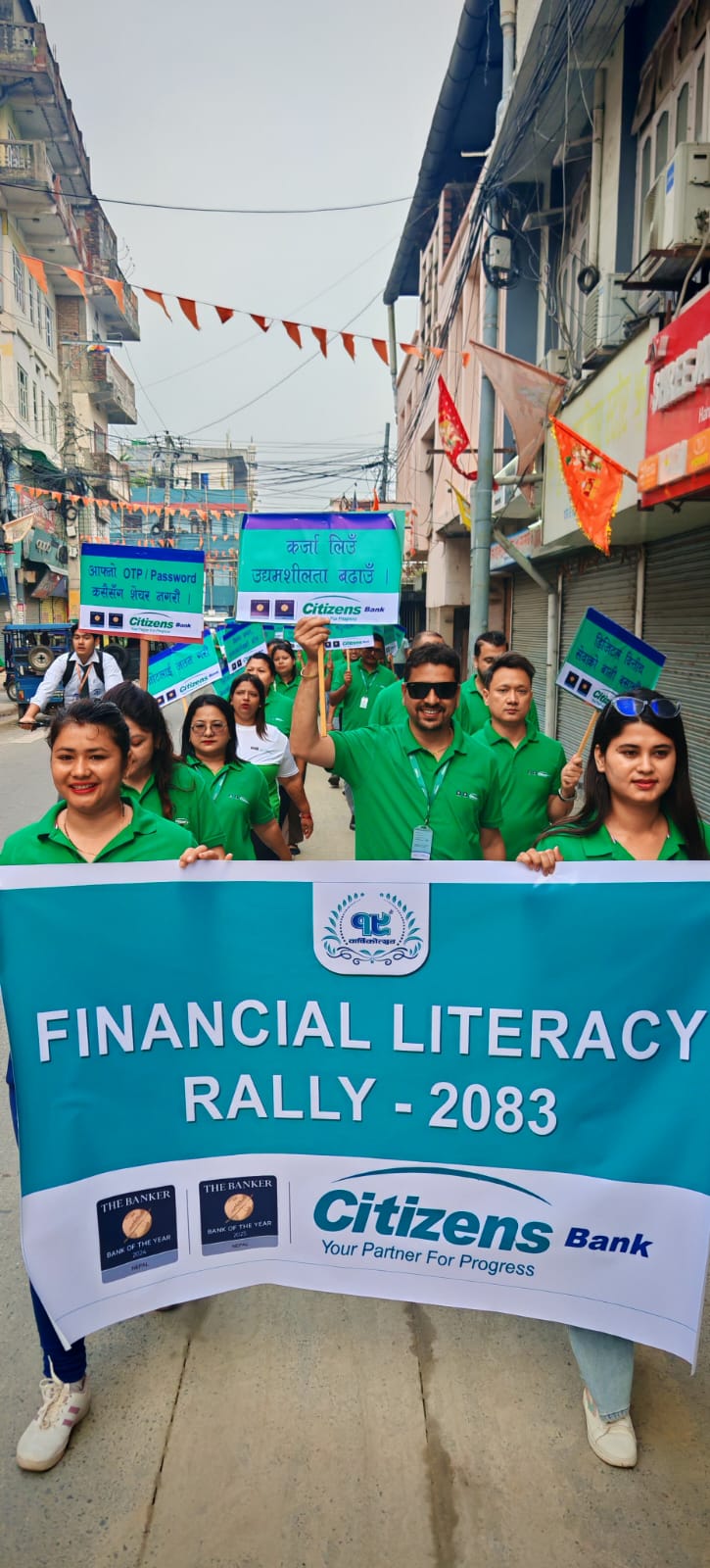त्यसैगरी, कोशी प्रदेश कार्यालयको आयोजनामा विराटनगरमा वित्तीय साक्षरता र्याली सम्पन्न गरिएको थियो । १०० भन्दा बढी कर्मचारीहरूको सक्रिय सहभागितामा सम्पन्न उक्त र्यालीमार्फत सर्वसाधारणमा बचत, कर्जा, डिजिटल बैंकिङ तथा वित्तीय अनुशासनसम्बन्धी जनचेतना अभिवृद्धि गरिएको थियो। यसै क्रममा, “रक्तदान जीवनदान” भन्ने मूल नाराका साथ महेन्द्रचोक शाखाद्वारा रक्तदान कार्यक्रम आयोजना गरिएको थियो। कार्यक्रममा कर्मचारीहरूका साथै ग्राहकहरूको उत्साहजनक सहभागिता देखिएको थियो ।